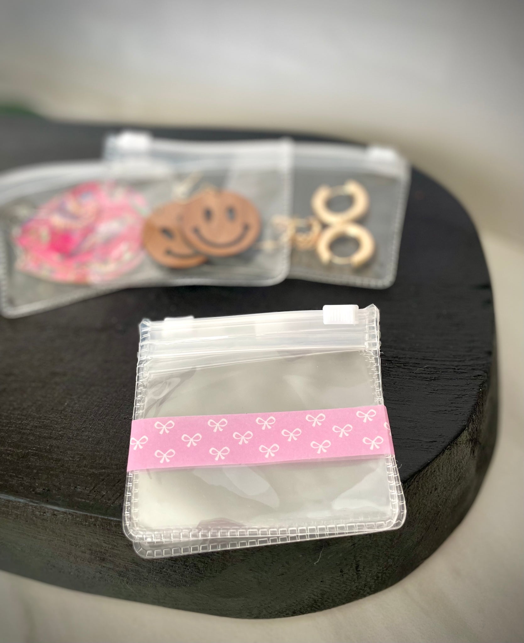 These clear zippered pouches are designed to protect your earrings from moisture, tangles, and the elements - perfect for travel or everyday use!